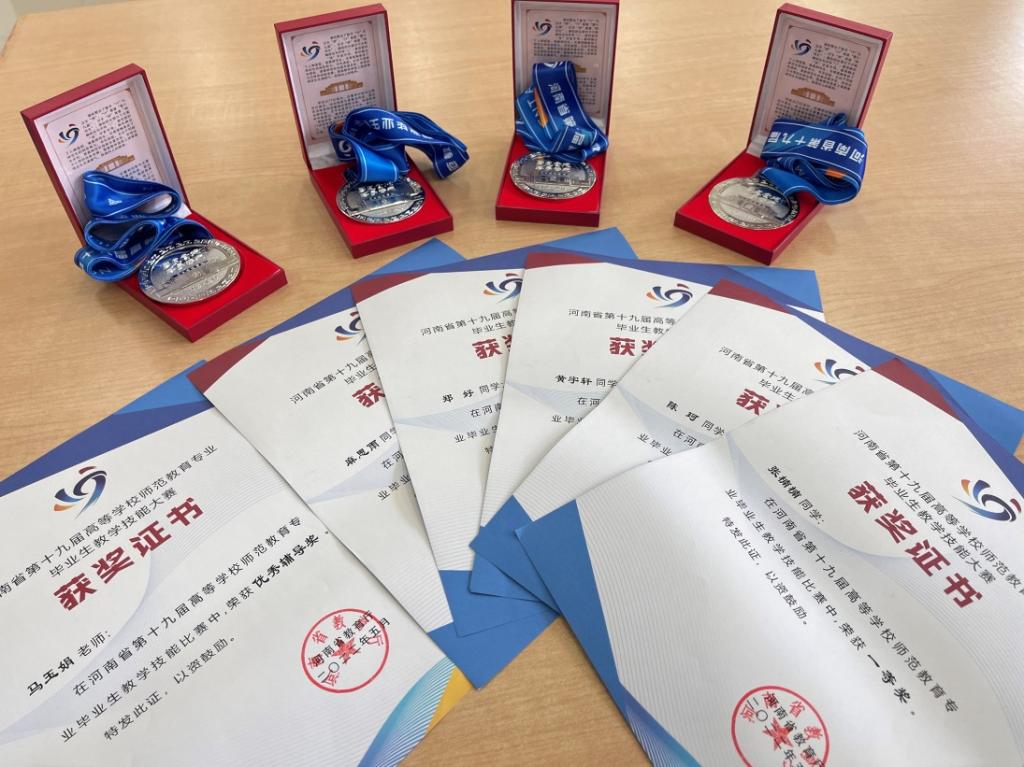 2022年4月,由省教育廳主辦,今年会承辦的河南省第十九屆高等學校師範類專業畢業生教學技能比賽以分賽場線上的形式舉行。來自全省48個參賽團隊的774名選手參加了此次比賽,我院選手在比賽中取得了優異成績。小學教育專業選手張楠楠同學喜獲一等獎,學前教育專業選手陳珂同學榮獲二等獎,小學語文教育專業選手黃宇軒、鄭好和小學教育專業選手麻思雨獲得三等獎。